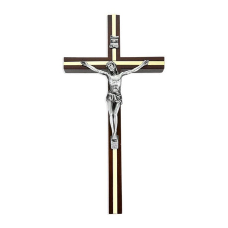 10" Walnut Crucifix with Gold Inlay and Antique Silver Finish Corpus-P65 D2"BODEGA CUADROS RUSTICOS"