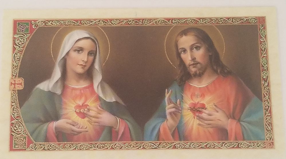 Corazones de Jesus y de Maria,estampa plastificada,oracion a los corazones de Jesus y de Maria