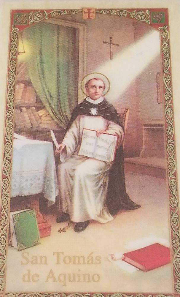 San Tomas de Aquino,estampa plastificada,oracion de santo tomas de aquino