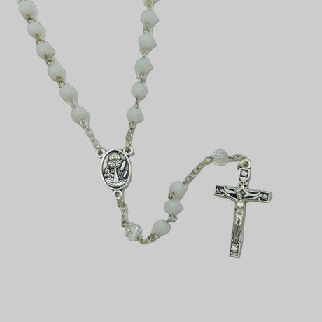 $5.99Unit price /Unavailable16"WHITE COMMUNION ROSARY W/ HEART SHAPED BEADS IN GREY BOX
