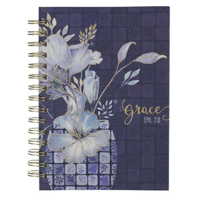 Grace Blue Floral Tile Wirebound Journal - Ephesians 2:8