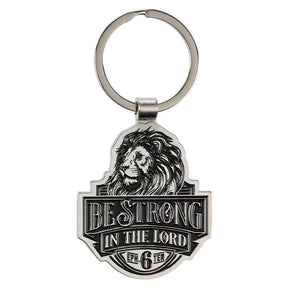 Be Strong in the Lord Lion Silver Metal Keychain - Ephesians 6:10