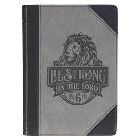 Be Strong in the Lord Black and Gray Lion Faux Leather Journal - Ephesians 6:10
