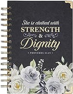 Blue Journal w/Scripture Floral Strength & Dignity Large Bible Verse Notebook