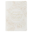 Elegant journal for a special lady, gold foil on creamy white with Scripture quote He has made everything beautiful in its time. Ecclesiastes 3:11