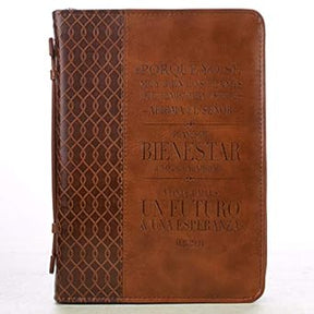 Handsome LuxLeather journal in brown features verse from Jeremiah 29:11 in debossed design "For I know the plans I have for you," declares the Lord, "plans to prosper you and not to harm you, plans to give you hope and a future." 336 lined pages inside; gold gilt-edging; ribbon marker. Size: 8.25" x 5.75".