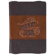 Man of God Honey-brown and Espresso Faux Leather Journal with Zipper Closure - 1 Timothy 6:11