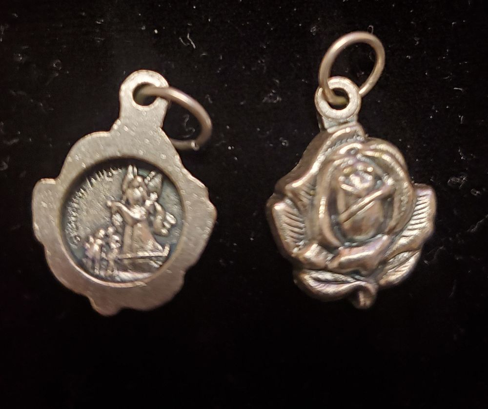 Medalla en rosa -diferentes imagenes-una pieza-color plateado-made Italy-mediana