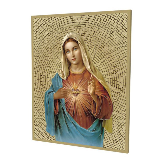 Gold Foil Mosaic Plaque of Immaculate Heart of Mary y Sagrado Corazon de Jesus