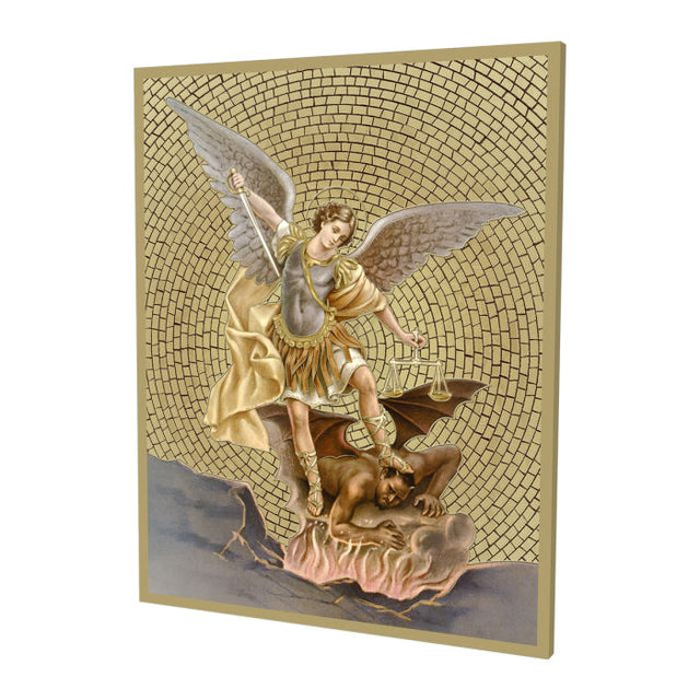 Gold Foil Mosaic Plaque of Saint Michael. is backordered and will ship as soon as it is back in stock.