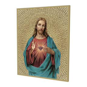 Gold Foil Mosaic Plaque of The Sacred Heart of Jesus.