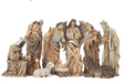 Traditional nativity set has beautiful detail and neutral tones. Set is 11 pieces; tallest figure is 12 inches. Made of resin.