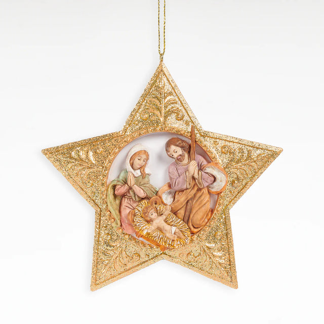 HOLY FAMILY STAR WITH GOLD GLITTER ORNAMENT