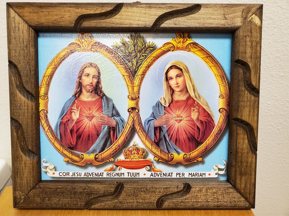 cuadro rustico del sagrado corazon de Jesus y de Maria- Hecho en mexico