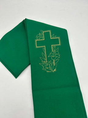 GREEN DEACON STOLE EMBROIDERED \CROSS