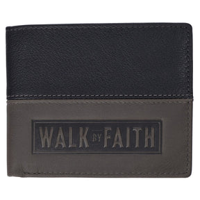 Walk by Faith Black and Gray Full Grain Leather Wallet - 2 Corinthians 5:7