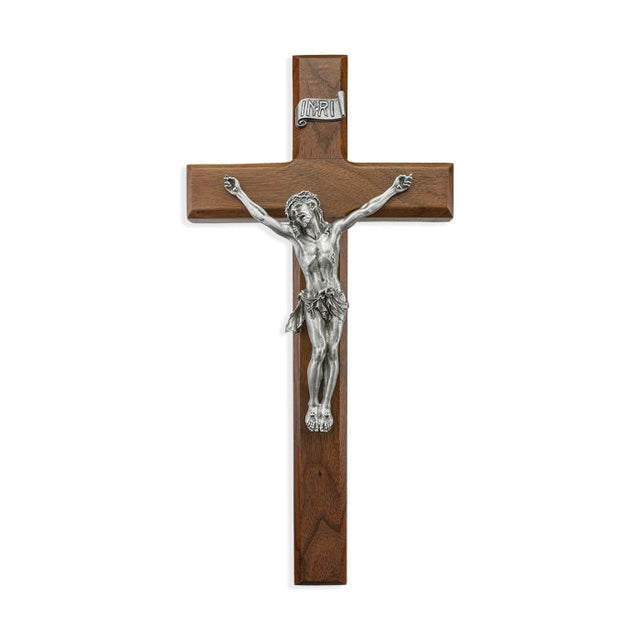 Our collection of crucifixes are some of the finest in the industry. Exceptional furniture-grade wood at affordable pricing. The deluxe 11" Walnut Wood Cross displays our superb antique fine pewter corpus, made in the USA by some of the finest New England craftsmen. Displayed in our deluxe gold window box. Truly a work of art. Crucifixes make great gifts for any occasion, such as Ordinations, Jubilees, Anniversaries, Weddings, Birthdays, Holidays, or Sacramental Occasions.