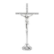 5" Brass Standing Silver Finished Crucifix with Silver Oxidized Corpus