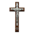 - 10" Deluxe Furniture Grade Solid Wood Crucifix in a Lacquered Walnut finish with Pearlized Cross and Wedding Rings
