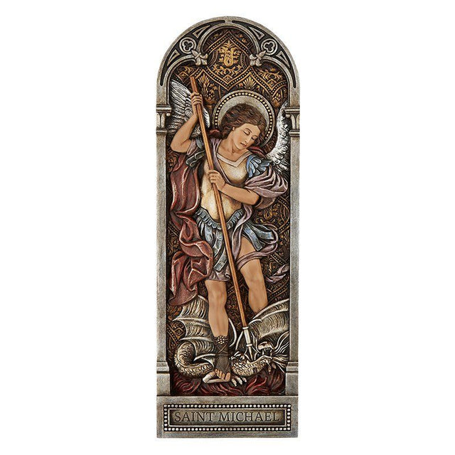 12" Saint Michael Plaque-P2 : 4" W x 12" H is backordered and will ship as soon as it is back in stock.