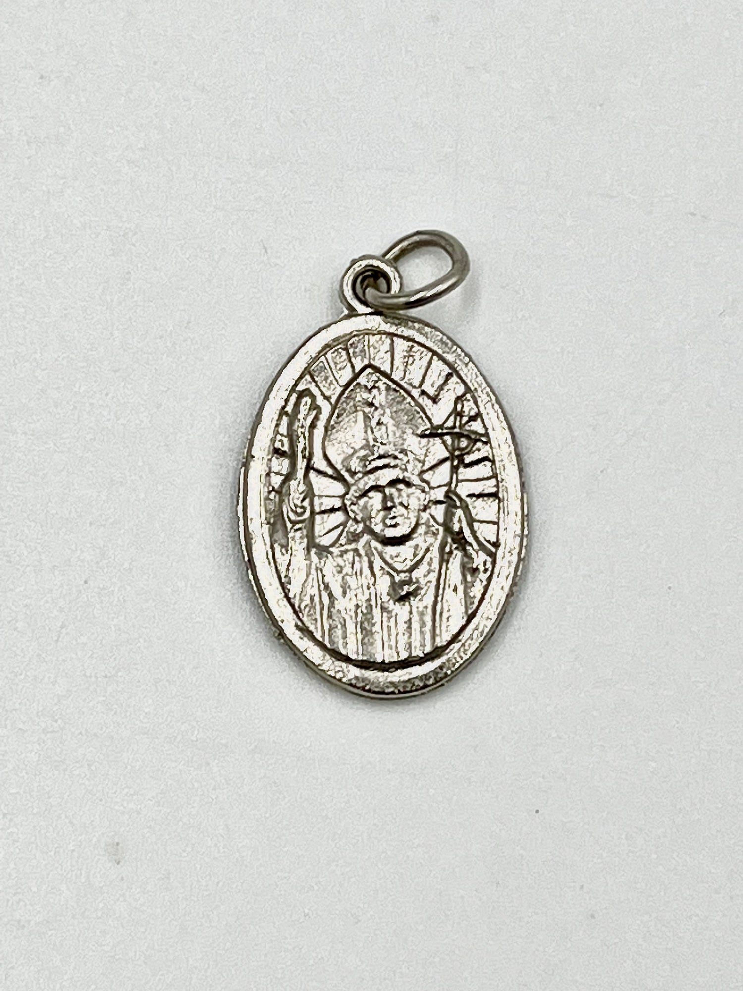 Medalla San Juan Pablo II-acero inoxidable-made Italy-mediana-color plateado