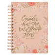 Consider the Wildflowers Peach Floral Spiral Journal - Luke 12:27