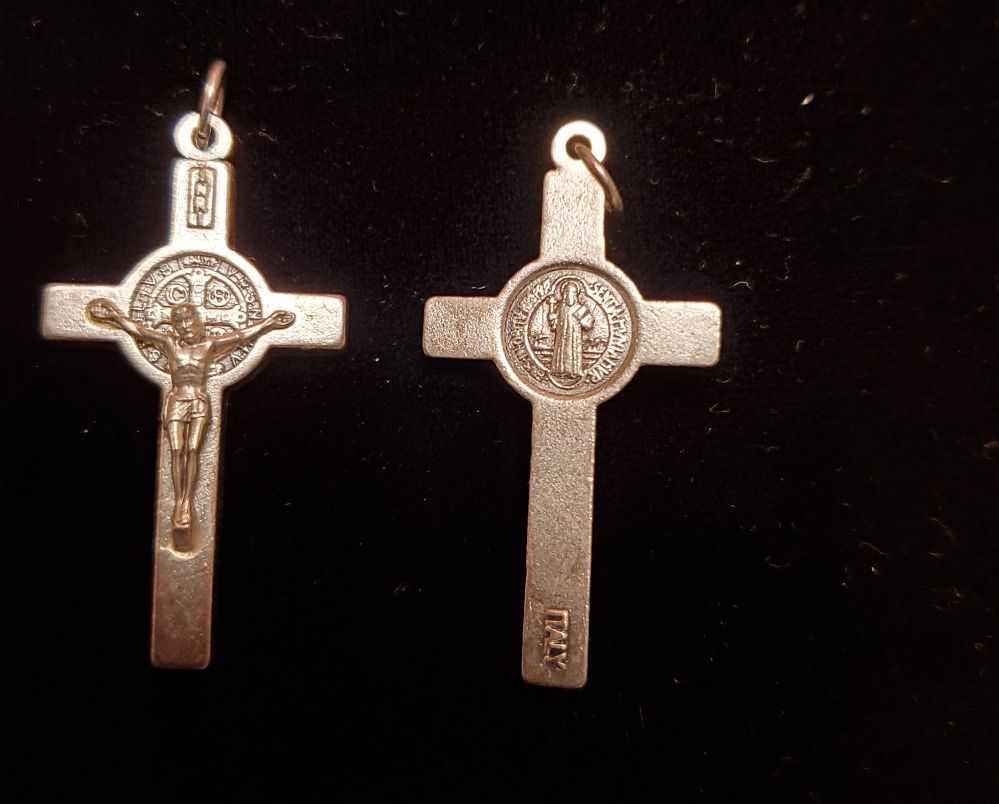 Medalla Cruz de Sn Benito mini cruz-cobre-color plateado