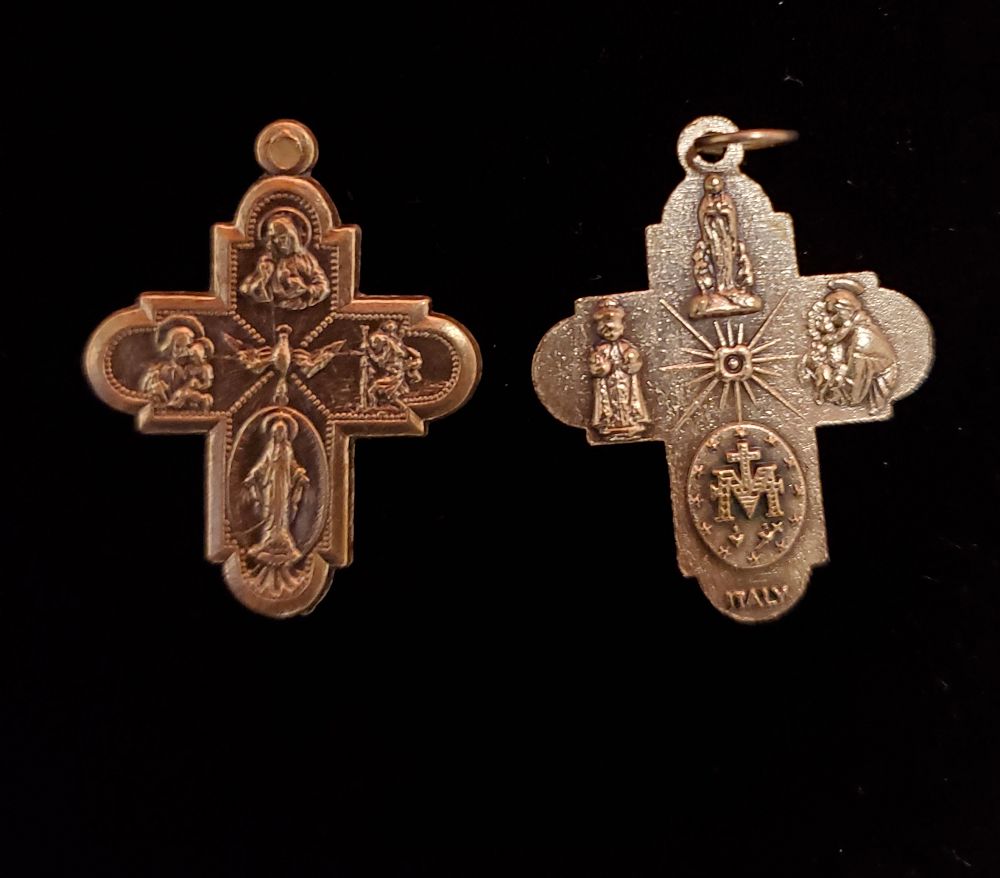 Medalla Cruz - diferentes Imagenes- color plateado-made Italy-doble cara-mediana