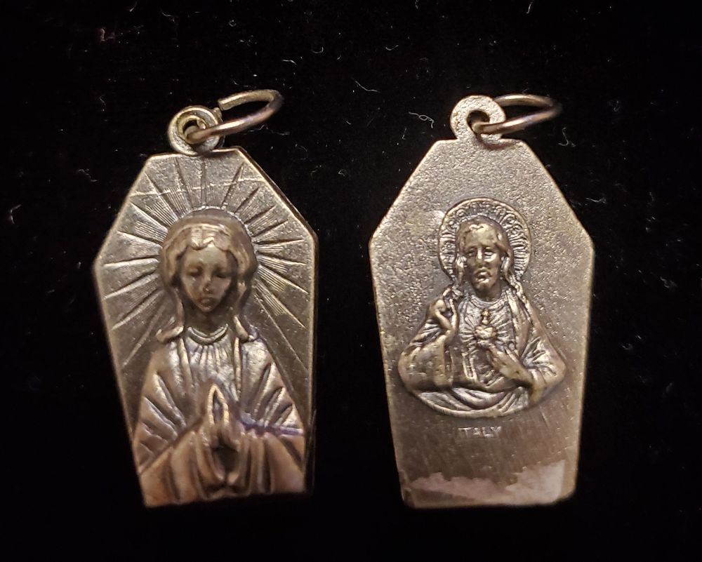 Medalla -Sagrado corazon de Jesus y Virgen Maria-made Italy-color plateado -Aprox.1