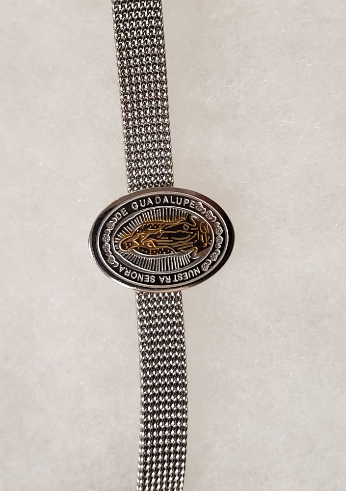 Pulsera con medella de V. Gpe. dorada y plateada/ Acero Inoxidable