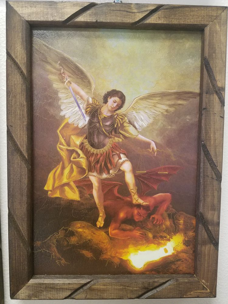 San Miguel Arcangel 17"x13"-Cuadro Rustico-Hecho en Mexico