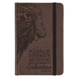 Strength and Defense Lion Walnut-Brown Faux Leather Hardcover Notebook with Elastic Band Closure - Exodus 15:2