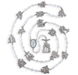 White Via Crucis Glass Bead Rosary with 14 Station of the Cross in Grey Velvet Box